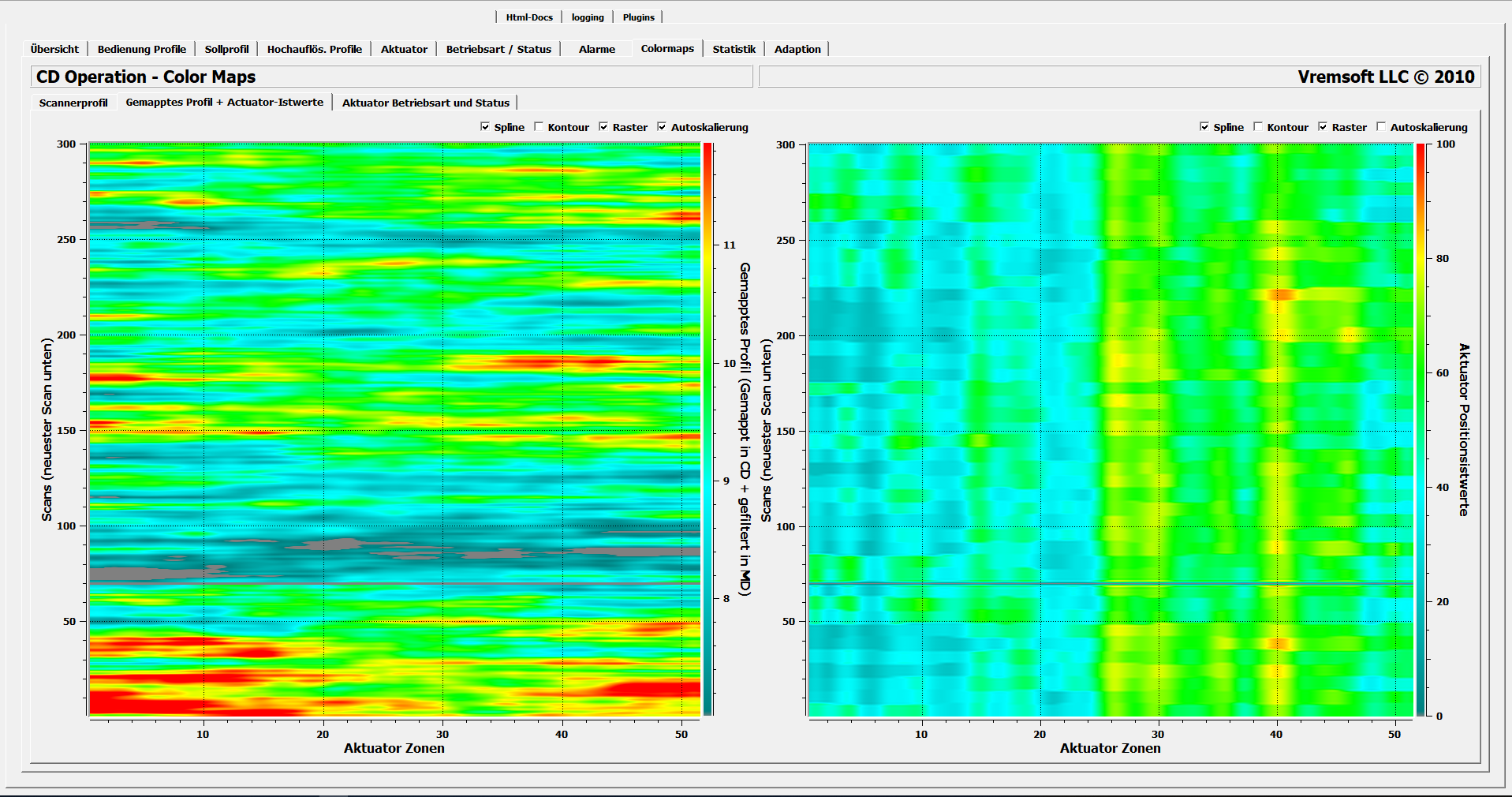 Screenshots of Vrem3 profiling software supplied by Transphase: